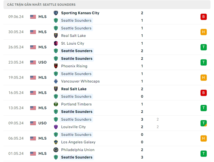 -Phong độ Seattle Sounders