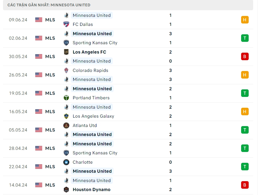 -Phong độ Minnesota Utd