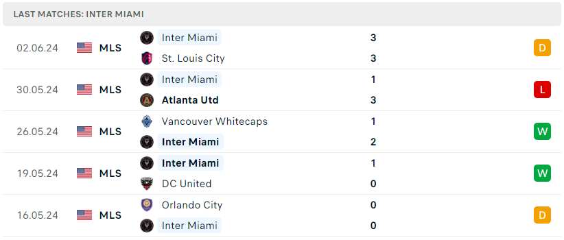 Sự thăng hoa của “hiện tượng” Inter Miami bất ngờ bị đứt nhịp sau khi họ để cho Atalanta Utd đánh bại với tỉ số 3-1 ở vòng thứ 16 và gần nhất là trận hòa 3-3 trước St. Louis City. Mặc dù vậy, nhưng nhìn chung màn trình diễn của Inter Miami vẫn là rất ấn tượng. Thử thách tiếp theo dành cho Messi cùng các đồng đội sẽ là chuyến hành quân đến sân của Philadelphia Union sau khoảng nghỉ 2 tuần.