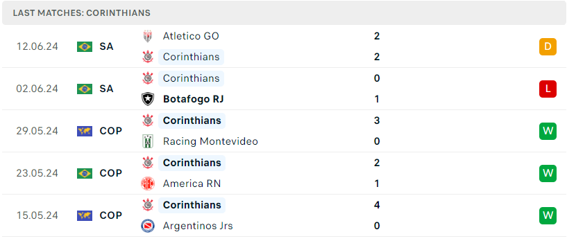 Phong độ của Corinthians