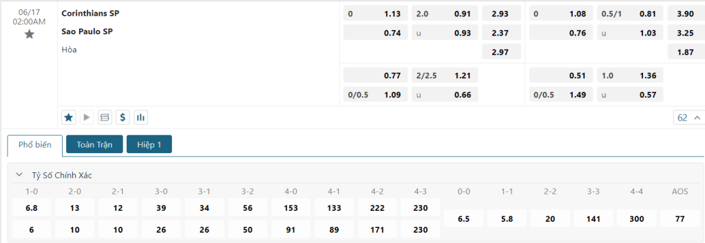 Soi kèo tỉ số Corinthians vs Sao Paulo