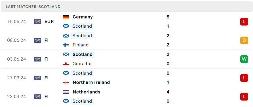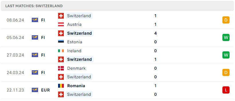 Phong độ đội bóng Scotland vs Thụy Sỹ