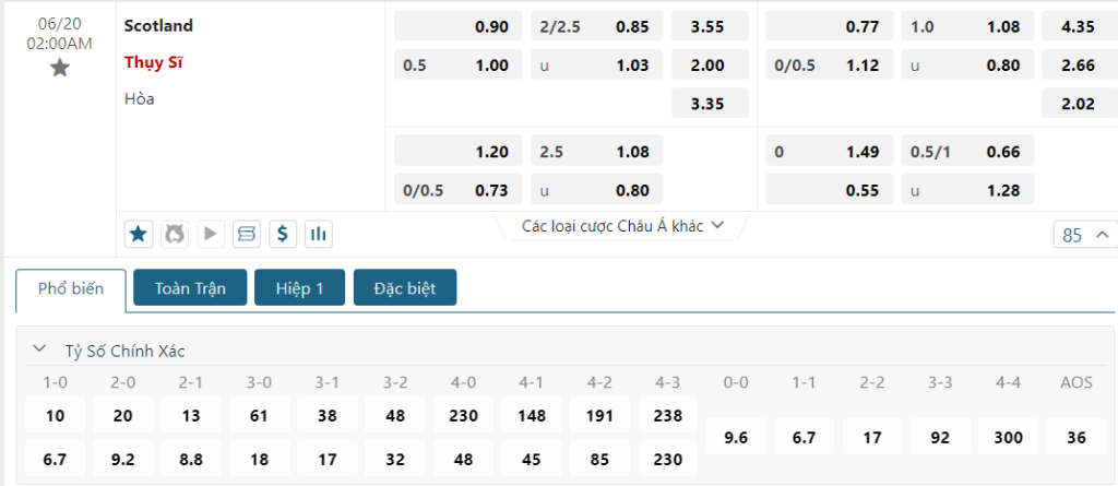 Soi kèo tỉ số Scotland vs Thụy Sỹ
