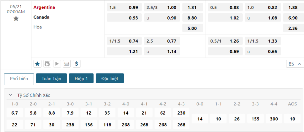 Soi kèo tỉ số Argentina vs Canada
