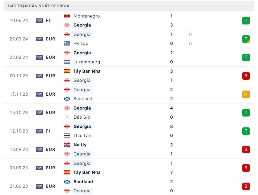 Georgia bước đến VCK Euro 2024 lần này theo một kịch bản không thể cảm xúc và đặc biệt hơn với việc giành vé từ vòng play-off. Đội tuyển Georgia dưới sự dẫn dắt của HLV Willy Sagnol đã có những bước nhảy vọt về sức mạnh trong những vừa qua, ngôi sao đáng chú ý nhất của đội bóng này có lẽ là thủ thành Mamardashvili hiện đang chơi tại Valencia và tiền vệ Khvicha Kvaratskhelia đang thi đấu tại Napoli. Georgia sở hữu lối chơi thiên về tấn công khi đội bóng này mang về 9 bàn thắng ở 5 trận đã qua, tuy vậy phòng thủ không phải là điểm mạnh của đội bóng này khi nhận hầu hết các bàn thua ở những trận góp mặt.