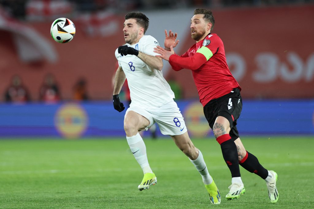 Georgia: Mamardashvili; Mamuchashvili, Lochoshvili, Kashia, Kvirkvelia, Azarovi; Kiteishvili, Kvevkveskiri; Chakvetadze; Mikautadze, Kvaratskhelia.