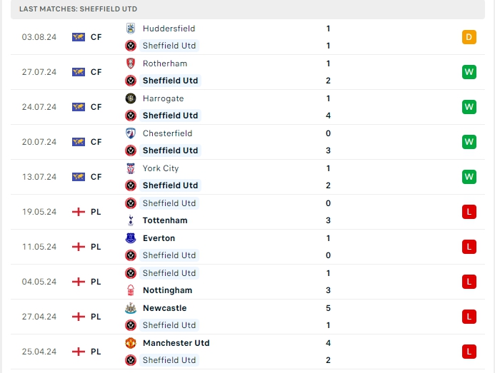 Trong khi đó với Sheffield Utdy, đội bóng này có một mùa giải đáng quên khi chơi tại giải đấu cao nhất xứ sở sương mù, tuyv ậy với chỉ 16 điểm có được sau 38 vòng đấu và xếp cuối cùng trên BXH và chính thức rơi xuống hạng nhất Anh ở mùa giải năm nay, để chuẩn bị cho mùa giải năm nay Sheffield Utd đang có được sự chuẩn bị tốt với chuỗi 5 trận bất bại ở 5 trận giao hữu vừa qua với 4 chiến thắng và 1 hòa, hàng công của Sheffield Utd mang về 12 bàn thắng và hàng thủ nhận 4 bàn thua, 4/5 trận đấu đó khép lại 90 phút từ 3 bàn thắng trở lên.