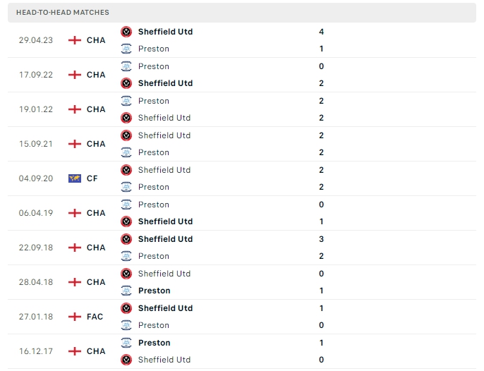 Ở trận gần nhất hai đội chạm mặt nhau Sheffield Utd có chiến thắng ấn tượng 4-1 trước Preston North End ngay trên sân nhà của mình và lần chạm trán lần này, mọi thứ cũng sẻ không hề thay đổi dù phải làm khách nhưng với sự vượt trội đang có Sheffield Utd vẫn là cái tên đáng để được đánh giá cao.