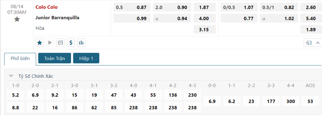 Kèo Châu Âu vẫn đang là sự nhỉnh hơn dành cho đội chủ nhà, khi mức ăn của họ là 1.87 và con số này của các vị khách là 4.00. Sự chênh lệch tương đối này này là đủ để thấy được cửa thắng của Junior là không quá nhiều trong trận đấu sắp tới. Nhận này này là hoàn toàn có cơ sở, khi Colo Colo đang có phong độ tốt mà còn được chơi trên sân nhà. Vì lẽ đó, họ vẫn có thể sớm giành lấy lợi thế.