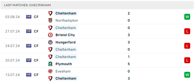 Phong độ của Cheltenham Town