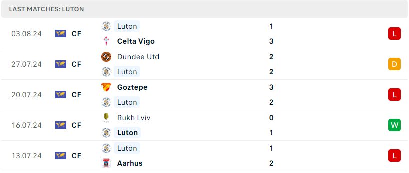 Trong 2 cuộc chạm trán gần nhất thì Luton Town đã thắng 1 và hòa 1 trước đối thủ, một thống kê tuy không quá vượt trội nhưng đủ để thấy được sự bản lĩnh của The Hatters so với đối thủ. Một tân binh lần đầu góp mặt tại EFL thật khó để làm nên quá nhiều bất ngờ trước Luton với kinh nghiệm chinh chiến EPL.