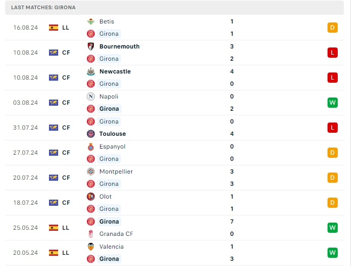 -Phong độ Girona