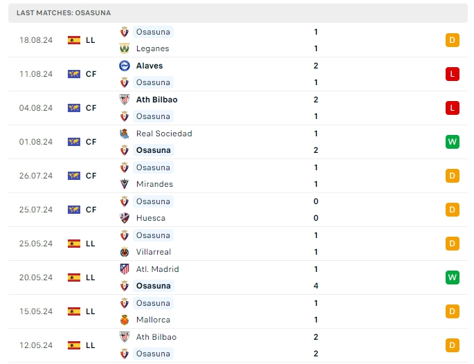 Trong khi đó với Osasuna , đội bóng này cũng không có được niềm vui ở ngày ra quân khi bị Leganes cầm hòa với tỷ số 1-1, đây cũng là trận thứ 3 liên tiếp không biết đến mùi chiến thắng của họ, sự chuẩn bị không quá tốt ở giai đoạn tiền mùa giải cũng khiến Osasuna gặp khó, hàng công của các vị khách mang về 6 bàn thắng và hàng thủ nhận 7 bàn thua, 3/5 trận đấu đó khép lại 90 phút từ 3 bàn trở lên, khi thi đấu xa nhà Osasuna mang về 10 bàn thắng và hàng thủ nhận 8 bàn thua trong 5 trận đấu và cả 5 trận từ 3 bàn thắng trở lên sau khi khép lại thời gian chính thức.