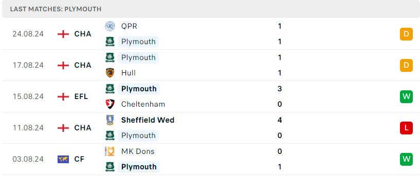 Sau thất bại múi mặt 0-4 trước Sheffield Wed ở trận ra quân, Plymouth đã ngay lập tức cho thấy sự bền bỉ và dấu hiệu trở lại với chiến thắng trước Cheltenham và 2 trận hòa liên tiếp tại Championship trước QPR và Hull City. Có vẻ như dưới sự dẫn dắt của Wayne Rooney, binh đoàn xanh đang dần cải thiện lối chơi, thể hiện sự kiên cường và khả năng thích ứng tốt hơn qua từng trận đấu. Điều này hứa hẹn sẽ giúp Plymouth Argyle trở thành một đối thủ khó chịu trong những vòng đấu tiếp theo.