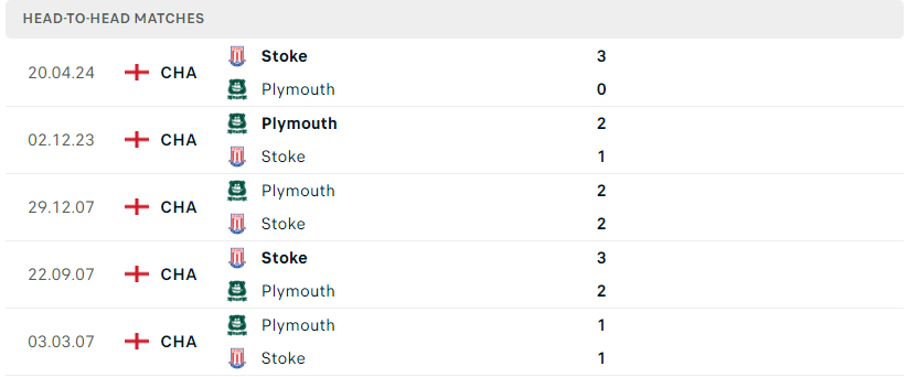 Thành tích đối đầu của Plymouth Argyle vs Stoke City