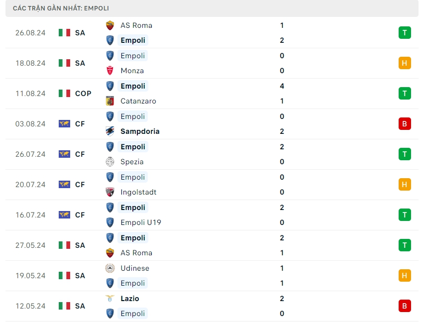 -Phong độ Empoli