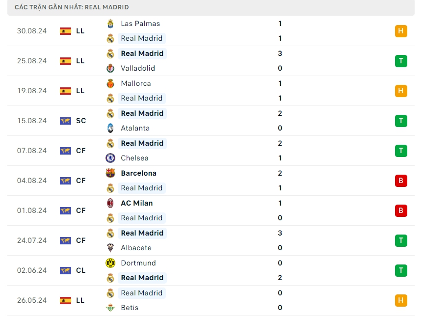 Phong độ đội bóng Real Madrid vs Real Betis