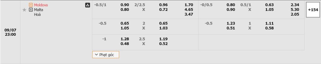 Soi kèo 1X2 7M Moldova vs Malta