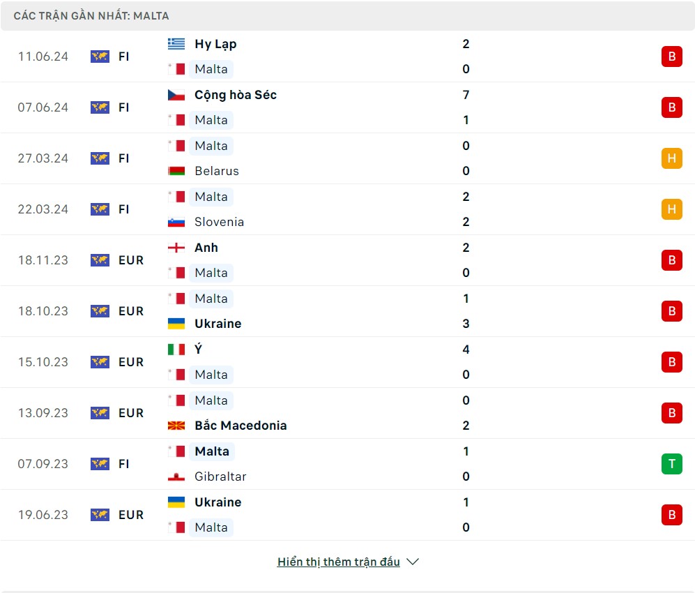 Phong độ đội bóng Moldova vs Malta