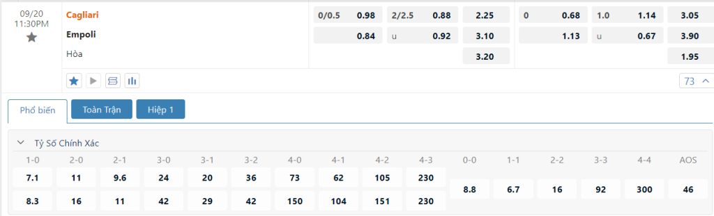 Soi kèo Châu Á, kèo chấp Cagliari vs Empoli