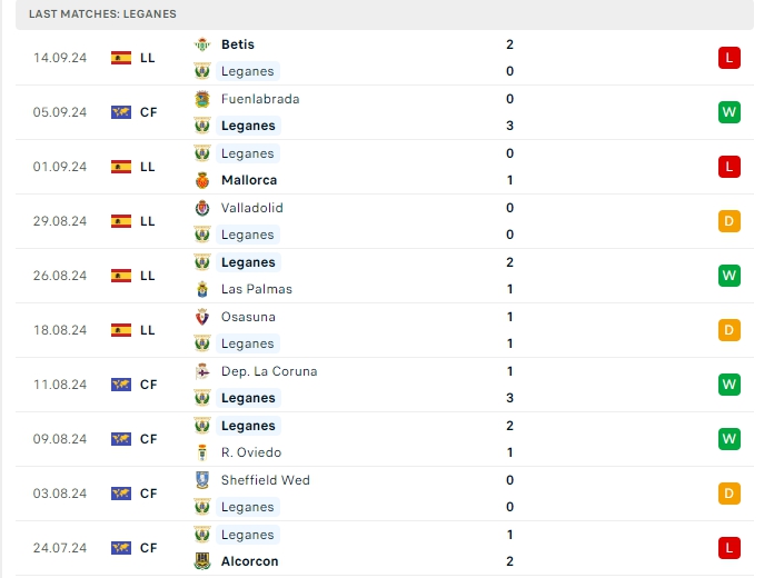 Leganes vừa qua nhận thất bại 0-2 trước Betis, đây là trận thua thứ 2 sau 5 lượt trận đầu tiên, với 1 chiến thắng, 2 hòa cùng 2 thất bại sau 5 lượt trận với 5 điểm có được, Leganes có được vị trí thứ 14 trên BXH, hàng công có được 3 bàn thắng, cùng hàng thủ nhận 5 bàn thua, 4/5 trận đấu đó của Leganes khép lại 90 phút không quá 2 bàn thắng, trên sân nhà của mình ở 5 trận gần nhất, hàng công của Leganes có cho mình 7 bàn thắng cùng hàng thủ nhận 5 bàn thua.
