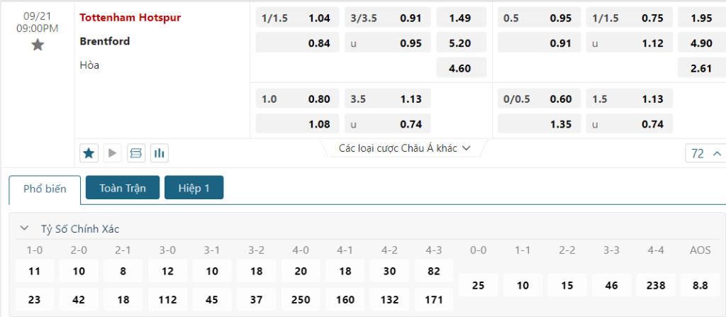 Soi kèo Châu Á, kèo chấp Tottenham vs Brentford