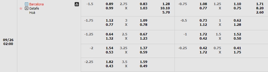 Sự áp đảo một lần nữa nghiêng về đoàn quân Hansi Flick ở kèo Châu Âu, khi mức ăn của họ chỉ là 1.28 và con số này của Getafe là 10.10. Mức ăn cực cao cho thấy, giới chuyên môn gần như không đánh giá khả năng tạo nên bất ngờ của  Getafe. Với phong độ và sức mạnh của Barcelona ở hiện tại, họ hoàn toàn có thể giành trọn 3 điểm một cách dễ dàng.