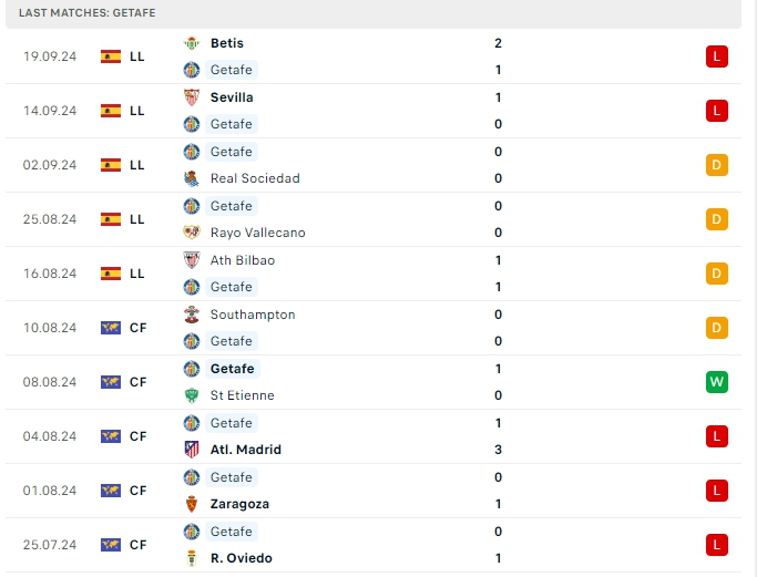 -Phong độ Getafe