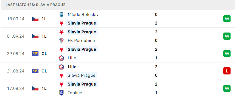 Phong độ của Slavia Praha