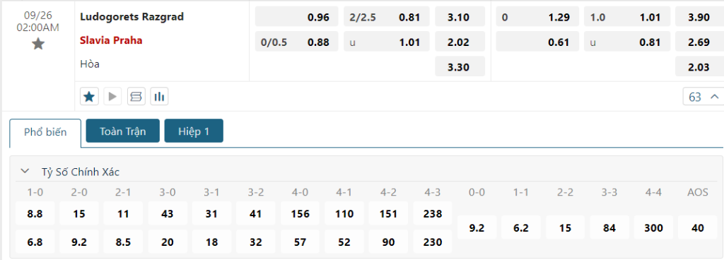 Kèo Châu Âu hiện vẫn đang là sự nhỉnh hơn dành cho các vị khách, khi mức ăn của họ là 2.02 và con số này của đội chủ nhà là 3.10. Sự chênh lệch không quá lớn giữa hai mức ăn cho thấy cơ hội chiến thắng của Ludogorets không hề bị đánh giá thấp. Điều này phản ánh sự cân bằng giữa hai đội, khi Ludogorets có lợi thế sân nhà còn Slavia Praha lại sở hữu kinh nghiệm, không loại trừ kịch bản hòa.