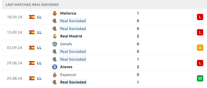 Phong độ của Real Sociedad