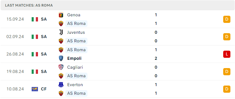 Sau 5 vòng đấu tại giải quốc nội, AS Roma chỉ mang về duy nhất 1 chiến thắng 3-0 trước Udinese. Mặc dù thành tích này không quá tốt với một thế lực tại Serie A như Roma, nhưng đội bóng dưới sự dẫn dắt của HLV De Rossi cũng đang cho thấy những tín hiệu khởi sắc trở lại. Dù vẫn còn nhiều vấn đề cần cải thiện, việc Roma được đánh giá là pot 1 cho thấy họ vẫn sở hữu đội hình chất lượng và đủ khả năng cạnh tranh. Đụng độ Ath Bilbao có thể sẽ là cơ hội để họ phô diễn sức mạnh.