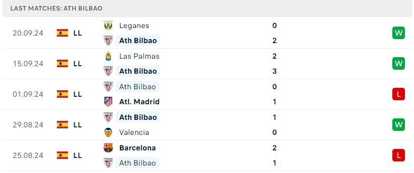 Phong độ của Athletic Bilbao