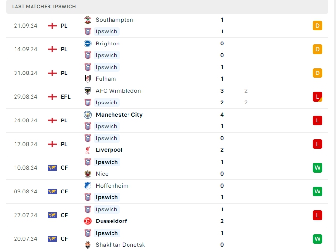 Ipswich vừa qua có được trận hòa trước Southampton, đây là trận hòa thứ 3 liên tiếp của họ, cùng với 2 thất bại sau 5 vòng đấu, Ipswich có cho mình 3 điểm và đang xếp vị trí thứ 17 trên BXH, hàng công của chủ nhà thi đấu không tốt khi chỉ có được 3 bàn thắng cùng hàng thủ nhận 8 bàn thua, 4/5 trận đấu đó khép lại 90 phút không quá 2 bàn thắng, trên sân nhà của mình hàng công của Ipswich cũng chỉ có được 1 bàn thắng, cùng hàng thủ nhận 2 bàn thua sau 2 lượt trận và cả 2 trận đấu đó đều khép lại không quá 2 bàn.