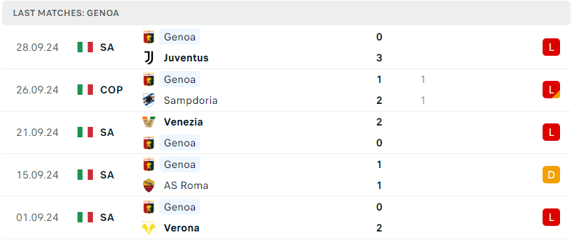 Bên kia, Genoa cũng đang thi đấu với một phong độ khá nghèo nàn ở mùa giải năm nay. Thống kê cho thấy ở 7 trận đấu gần nhất, bao gồm 1 trận tại Coppa Italia và 6 trận tại Serie A, họ chỉ giành được duy nhất 1 chiến thắng. Điều đáng thất vọng hơn là Genoa còn bị loại khỏi Coppa Italia sau trận hòa 1-1 trước Sampdoria và thua ở loạt sút luân lưu. Với phong độ bết bát ở hiện tại, chuyến làm khách trước Atalanta vào cuối tuần chắc chắn sẽ là bài test không có lời giải dành cho Grifone.