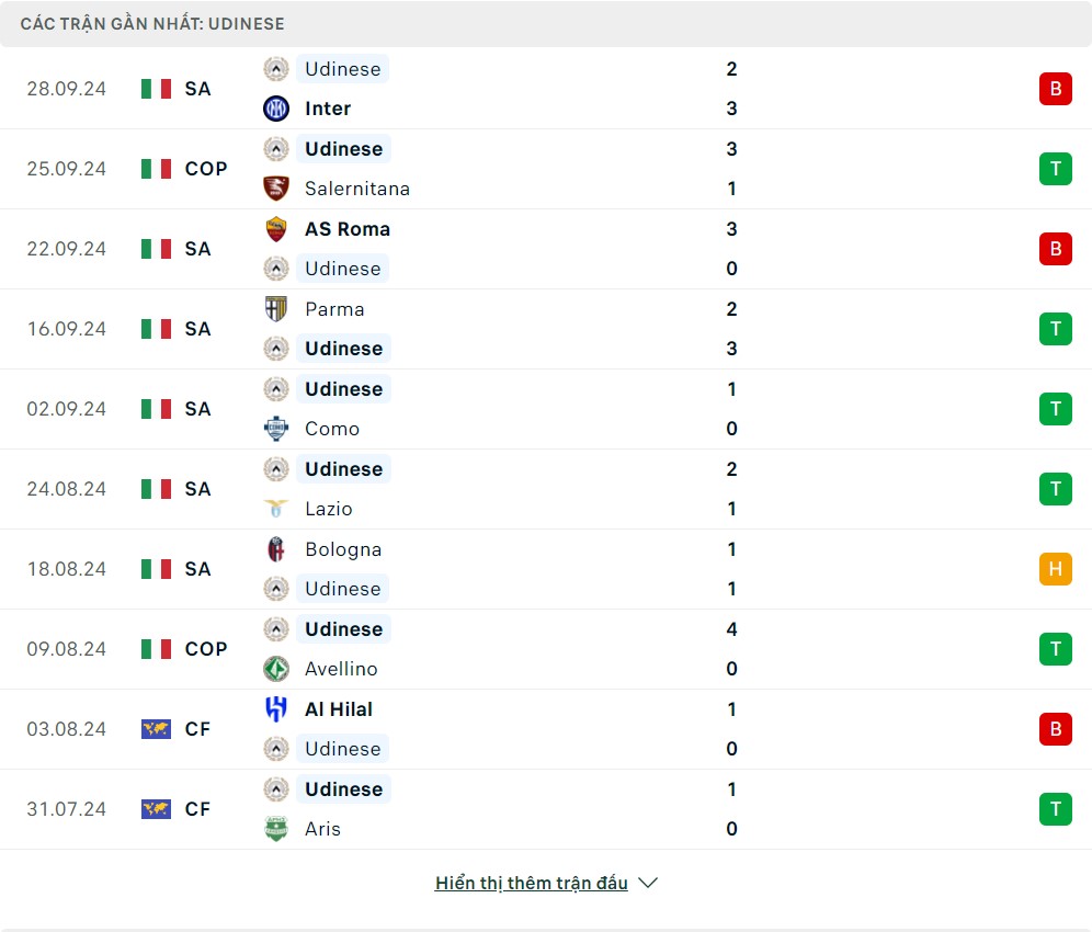 - Chọn Udinese FT