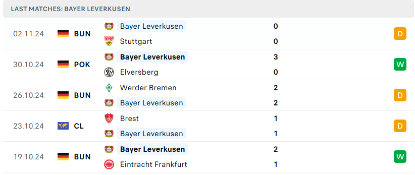 Phong độ của Bayer Leverkusen