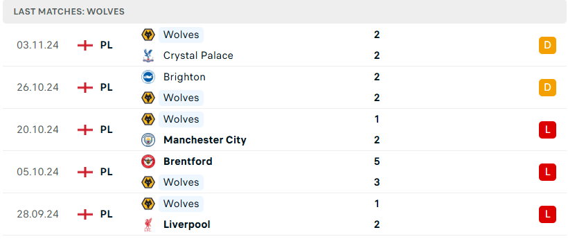 Phong độ của Wolves