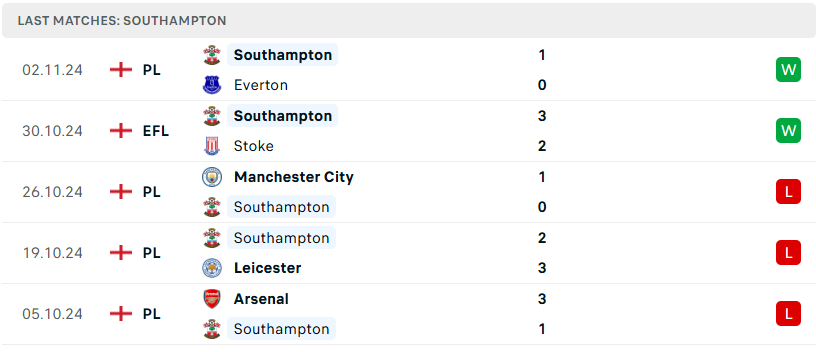 Phong độ của Southampton