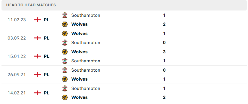 Thành tích đối đầu của Wolves vs Southampton