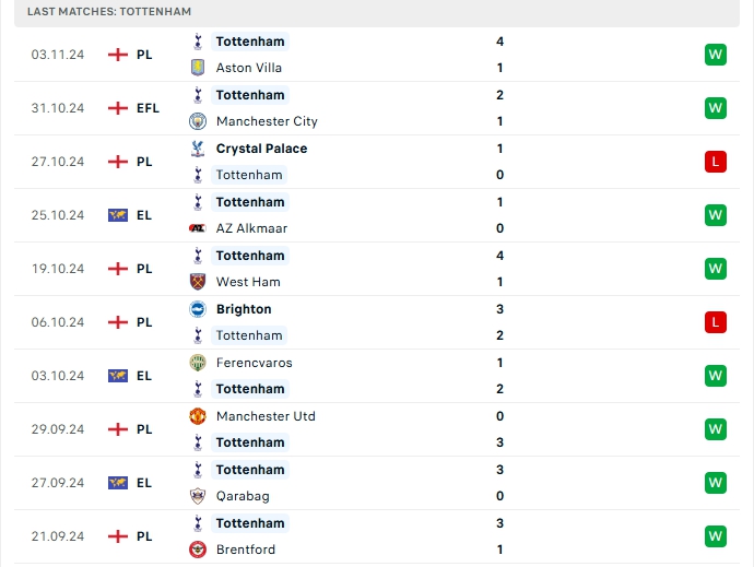 Tottenham vừa có chiến thắng ấn tượng 4-1 trước Aston Villa, đây là trận thắng thứ 5 của họ sau 10 lượt trận, cùng với 1 hòa và 4 thất bại, có được 16 điểm và đang xếp vị trí thứ 7 trên BXH, hàng công của Tottenham có cho mình 22 bàn thắng cùng hàng thủ nhận 11 bàn thua, 3/5 trận gần đây của Tottenham khép lại từ 3 bàn thắng trở lên, trên sân nhà của mình Tottenham mang về 15 bàn thắng sau 5 trận đấu, cùng hàng thủ nhận 4 bàn thua, 4/5 trận đấu đó khép lại 90 phút vượt mốc 3 bàn.