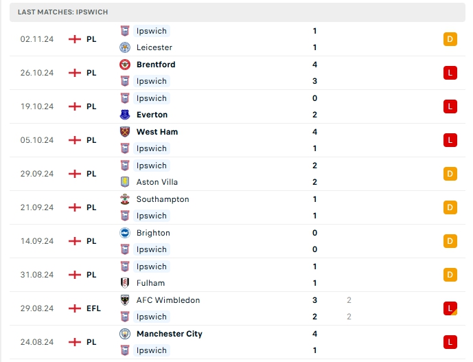 Bên kia chiến tuyến, Ipswich vừa có trận hòa trước Leicester, trận hòa này nối dài chuỗi phong độ kém cỏi với 11 trận liên tiếp không biết đến mùi chiến thắng, sau 10 vòng đấu, Ipswich có được 5 hòa cùng 5 thất bại, 5 điểm có được và đang xếp vị trí thứ 18 trên BXH, hàng công của Ipswich mang về 10 bàn thắng, tuy vậy hàng thủ đang chơi tệ khi nhận đến 21 bàn thua, 4/5 trận vừa qua của Ipswich khép lại từ 3 bàn thắng trở lên,