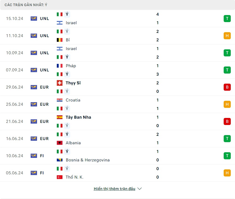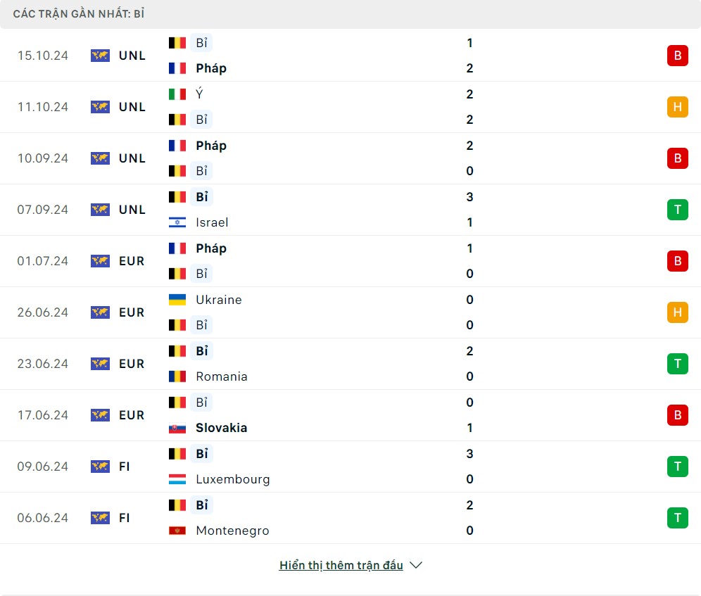 Phong độ đội bóng Bỉ vs Italia