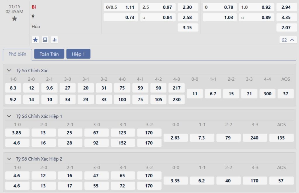 • Chọn Italia +0.25 FT