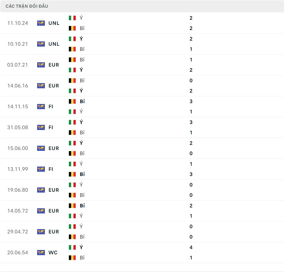 Lịch sử thi đấu của Bỉ vs Italia