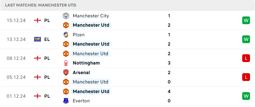 Phong độ đội bóng Manchester Utd vs Bournemouth