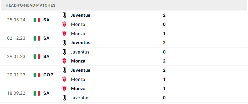Không chỉ vượt trội về phong độ, lối chơi và con người ở hiện tại, ‘Bà đầm già’ còn cho thấy sự khác biệt ở thành tích đối đầu, khi đã thắng đến 3/4 lần gặp nhau. Điều này càng tô điểm thêm cho bản lĩnh và sự vượt trội của Juventus so với Monza. Khi mà mọi thứ đều không ủng hộ tập thể vùng Lombardia không họ chắc chắn sẽ khó tránh khỏi thất bại tâm phục, tỉ số 2-0 sẽ nghiêng về Juventus.