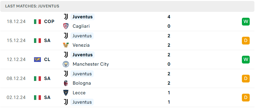 Trái ngược với sự kém cỏi của Monza là sự ổn định đáng kinh ngạc của Juventus. Chiến thắng 4-0 trước Cagliari vừa qua đã đánh dấu chuỗi 12 trận bất bại liên tiếp của “Bà đầm già”. Ấn tượng hơn, tại Serie A, họ hiện là đội duy nhất vẫn giữ được thành tích bất bại tính đến thời điểm này. Tuy nhiên, dù tiến bộ rõ rệt, đoàn quân Thiago Motta vẫn cần cải thiện khả năng kết liễu trận đấu, bởi họ cũng đang là đội bóng có số trận hòa nhiều nhất. Chạm trán Monza sẽ là cơ hội quá tốt để Juventus tiếp đà thăng hoa.