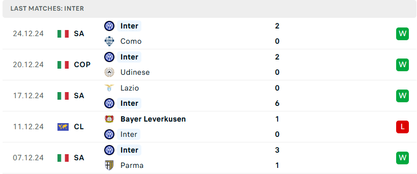 Trái ngược hoàn toàn với sự yếu kém của Cagliari là phong độ thăng hoa và ổn định tuyệt đối của Inter Milan. Sau chiến thắng hủy diệt 6-0 trước Lazio, nhà ĐKVĐ tiếp tục khẳng định sức mạnh với thắng lợi 2-0 trước Como. Từ đầu mùa giải, đoàn quân Simone Inzaghi chỉ phải nhận đúng một thất bại. Hiện họ chỉ kém ngôi đầu đúng một chiến thắng nhưng vẫn còn trong tay một trận chưa đấu. Với lối chơi đầy tự tin và đẳng cấp của một tập thể hàng đầu Serie A, 3 điểm trước Cagliari phải là nhiệm vụ bắt buộc.