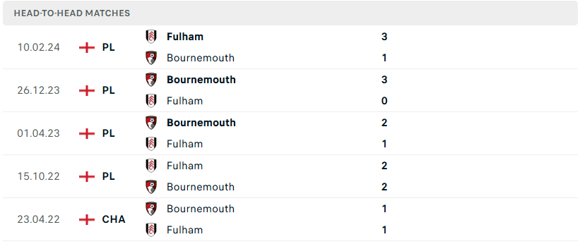 Thành tích đối đầu của Fulham vs Bournemouth